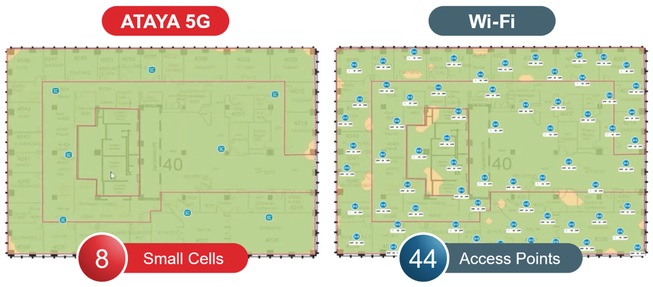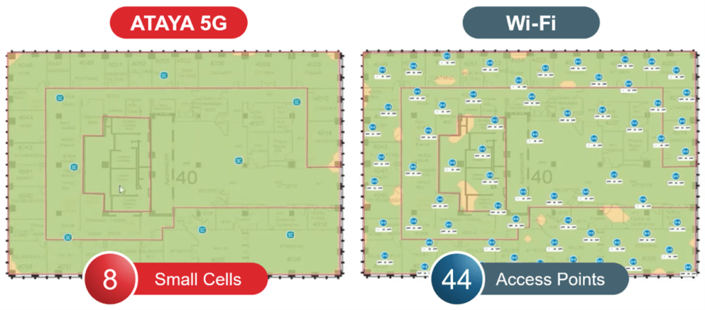 - Coverage Requirements: Private 5G typically requires fewer radios than Wi-Fi for the same coverage. In some real-world comparisons, a single floor might need just 8 private 5G small cells vs. 42 Wi-Fi access points.